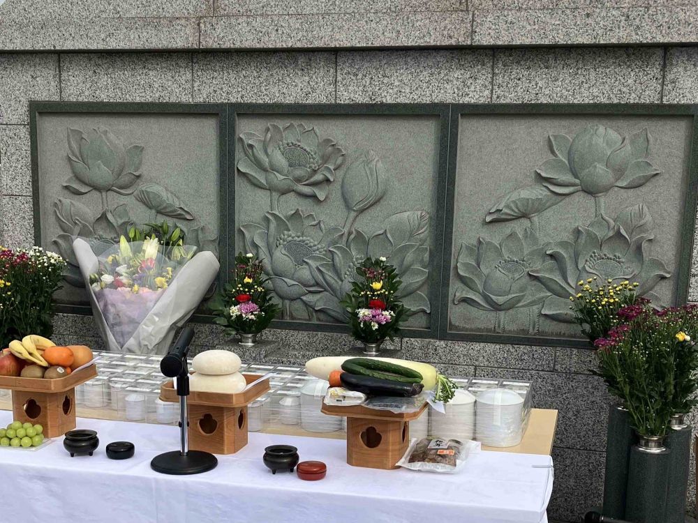 2025年11月13日(木)、曇天ではありましたが、風もなく、公園内の木々も赤や黄色へと色づき、秋を感じる季節の中、第44回きずなの会合同納骨式を執り行いました。