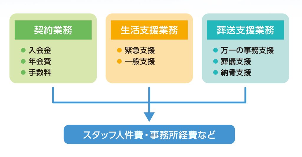 第3条 本法人は、広く一般市民を対象として、高齢者社会の中で、高齢者や障がい者が暮らしを守り真に豊かな生活を実現できるよう、身元保証の引き受けを軸に社会的弱者の生活を支援し、また近く訪れるであろう死にかかわる問題として、死後の事務処理、葬儀や相続に関する調査、研究、支援、相談等を行うことにより人権擁護を図るとともに、本人あるいは親族の精神的、経済的負担を軽減し、高齢者・障がい者の社会福祉の増進に寄与することを目的とする。