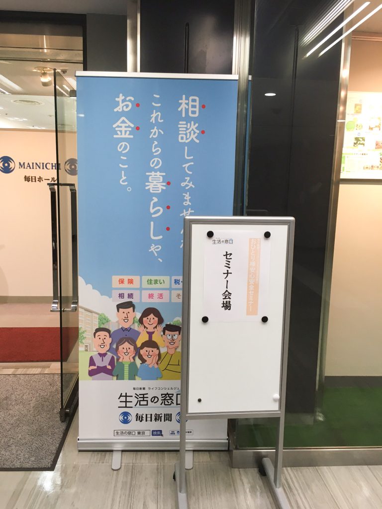 12月13日に毎日新聞社東京本社の毎日ホールにて、「おひとり様安心安全セミナー」と題した身元保証に関するセミナーを行いました。