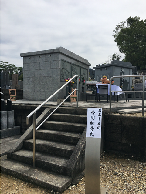 さて平和公園内にあります「安楽廟」で、80名の方々を「きずなの会の合祀墓」へ納骨し、至誠院のご住職様、副住職様による読経のもと、皆様に代わり職員が丁寧にご焼香させていただきました。