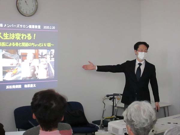 まずは、浜松南病院の梅原慶太院長先生が「骨で人生は変わる!」をテーマに骨粗鬆症について分かりやすい説明がありました。