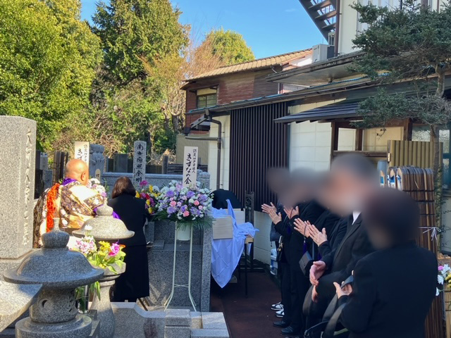 3月29日(金)東京都多摩市にある宝泉院にて、八王子支局の合同納骨式を執り行いました。当日午前中は荒天のため無事に行えるか不安でしたが、式前には初夏を感じるほどの恵まれた天候に変わり青空の下、7名の方々を納骨させていただきました。遠方から8名のご遺族様がおみえになりました。ご住職に読経を賜り、ご参列いただいたご遺族様に続き当会の職員もご焼香させていただき、無事に納骨式を終えることができました。