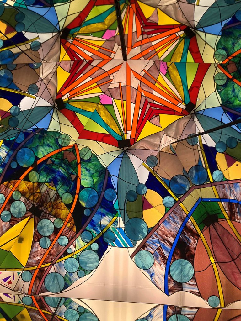 お料理は「茶めしうな釜」です。会員様同士で談笑しながら、美味しそうに召し上がっていらっしゃいました。最後に三河工芸ガラス美術館へ行きました。こちらにはギネスに認定された巨大万華鏡があります。あまりの綺麗さに何回も巨大万華鏡を見に行かれた方や、ガラスで作られたアート作品をスマホのカメラで撮影される方など、皆様思い思いに見学されていました。