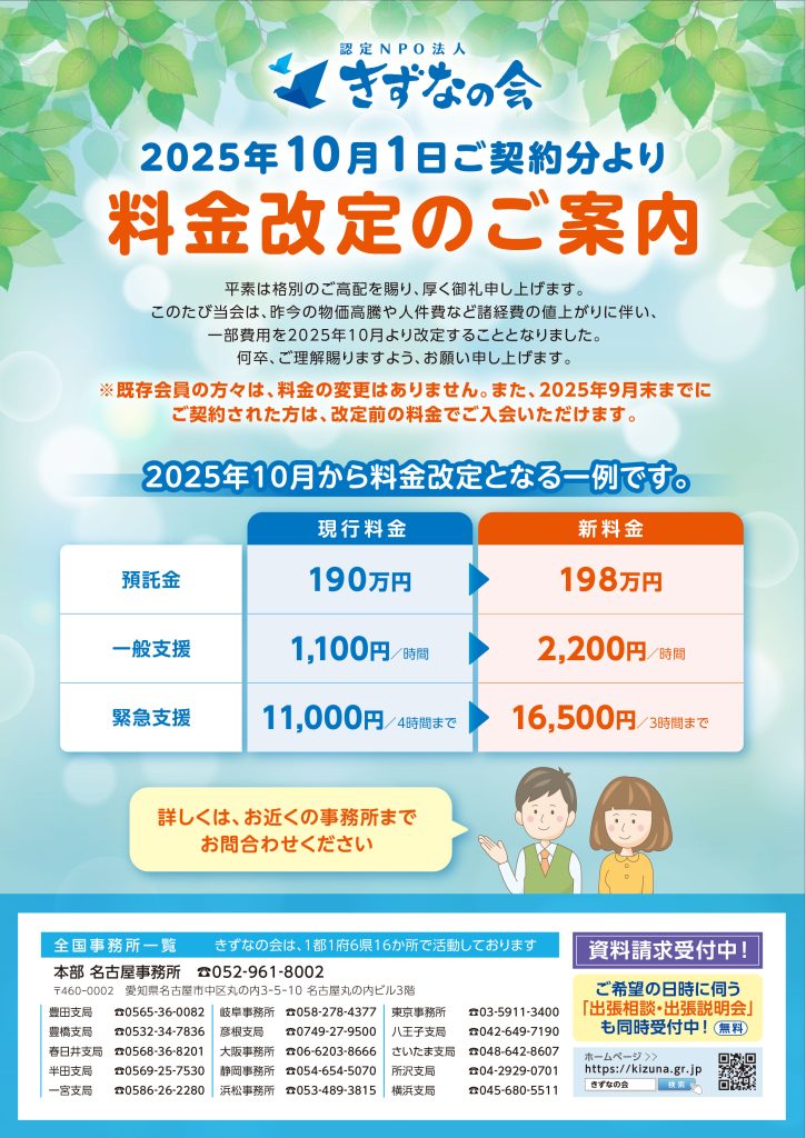 当会は、2025年10月1日より一部料金を改定させていただきます。