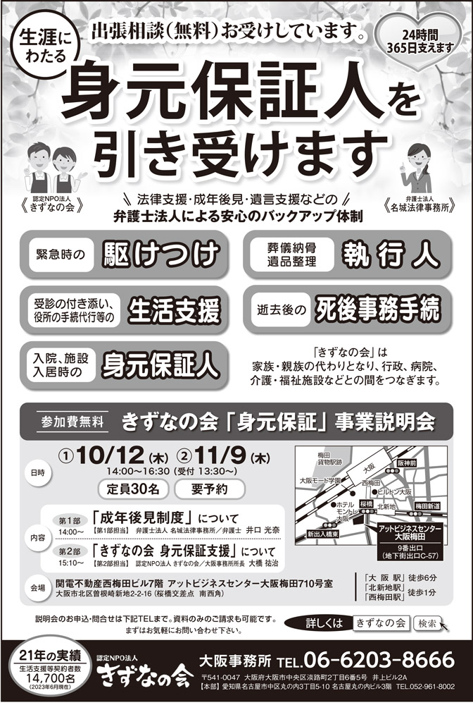 【大阪】10/12(木)身元保証制度説明会 in西梅田