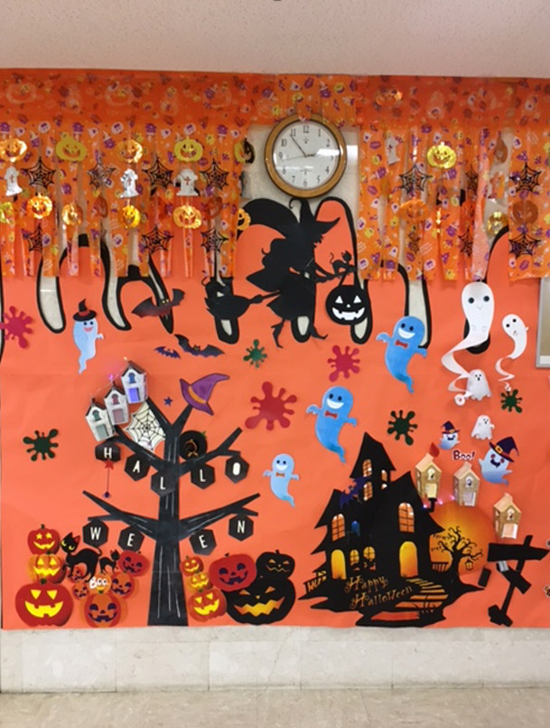 先日、会員Y様の新型コロナウイルスワクチン接種の付添いをしました。施設で車椅子を利用されているY様のご移動は介護タクシーにお願いし、みよし市内の病院で待ち合わせをしました。接種の順番を待つロビーには、壁面一杯に鮮やかなハロウィンの飾りつけが施されており、Y様と「綺麗だねぇ~。」「季節を感じるね。」としばし見入っていました。Y様は以前、桜や藤のお花見を楽しまれたことを懐かしそうに話され、「またお出掛けができるようになるといいなぁ~。」とおっしゃっていました。コロナ禍でまだ外出や季節の行事も思う様にならないこともありますが、ロビーの飾りつけによって明るい気持ちにさせていただきました。ほどなくY様は予防接種を無事に終えられ、「2回終わってホッとした。」と笑顔で施設に戻られました。