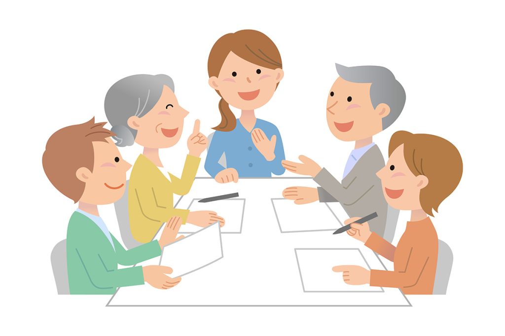 担当者会議に、きずなの会として参加する際には、会員様の現状と今後について把握するとともに、会員様の思いや、不安や疑問に感じられている事などについて、その場で関係者各位に共有し話し合います。何らかの事情により、会員様のご意向に添えない場合もございます。その時は、その理由について、会員様が理解しやすい方法でご説明することを心がけています。