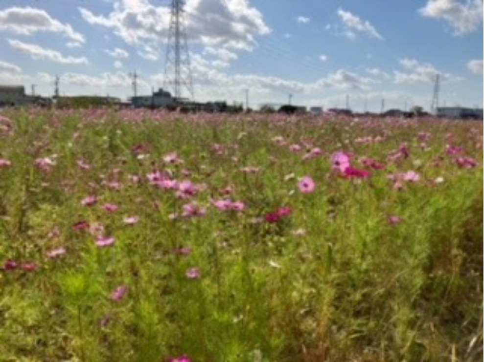 久し振りの外出で、コスモスを鑑賞され「笑顔がコスモスの花のようでした。」と施設の職員様よりご報告と併せてコスモス畑の写真をいただきました。